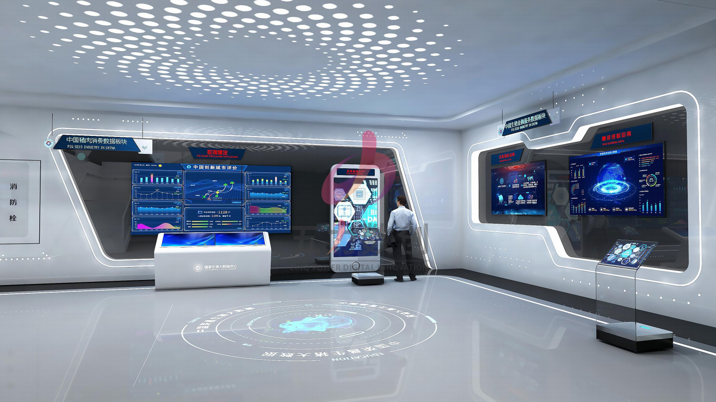 項目介紹:生豬大數(shù)據(jù)中心聚焦中國生豬完整的產業(yè)鏈,以大數(shù)據(jù)的方式來為榮昌打造獨一無二的生豬大數(shù)據(jù)中心,致力于生豬產業(yè)數(shù)字化、數(shù)字產業(yè)化。整個大數(shù)據(jù)中心從豬的生產、養(yǎng)殖、交易幾大板塊,通過數(shù)字沙盤、互動場景體驗、互動滑軌屏等多種數(shù)字多媒體技術來全方位多角度展示生豬全產業(yè)鏈的各個環(huán)節(jié),助力產業(yè)數(shù)字化升級,為生豬行業(yè)提供準確可靠的決策依據(jù)。專精尖技術與產學研層面縱橫結合,全角度、多方位立體聚焦生豬全產業(yè)鏈,以明確的觀感呈現(xiàn)信息技術與生豬生產相結合的先進科技,助力生豬產業(yè)智能升級,推動數(shù)字養(yǎng)豬新基建的發(fā)展。